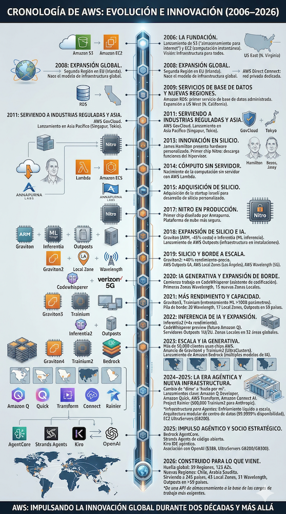 El hito que marcó el inicio de esta era ocurrió el 14 de marzo de 2006, con el lanzamiento del servicio S3, una plataforma diseñada para el almacenamiento de objetos como imágenes y archivos. Según explicó Vera, aunque muchos usuarios no lo perciben, esta infraestructura sostiene actividades cotidianas como solicitar un transporte a través de Uber, consumir contenido en plataformas de streaming como Netflix o Disney+, o realizar pedidos mediante Rappi.
