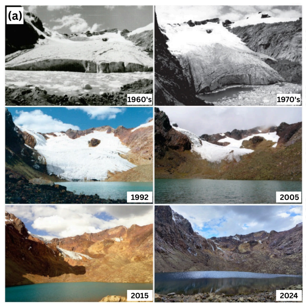 “Nos interesa conocer efectivamente cómo es que estos elementos que almacenan agua van a modificarse en el futuro, porque esto va a estar asociado a la disponibilidad real que nosotros vamos a tener para el sustento primario de las poblaciones», advierte Bello Chirinos. Las fotografías recopiladas en los últimos 50 años muestran un retroceso que afecta tanto la escala local como la global.