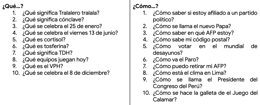 Esto demuestra que el buscador se ha consolidado como la ventanilla principal de atención al ciudadano. Ante la incertidumbre política, los usuarios recurrieron a la web para validar datos, buscando incluso nombres específicos de autoridades como “José Jerí” o indagando “¿Cómo se llama el Presidente del Congreso del Perú?”.