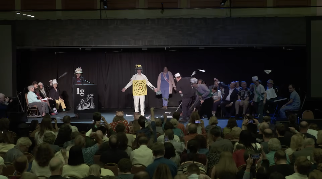 Los Ig Nobel, organizados por la revista «Annals of Improbable Research», no son simples parodias. Su misión es despertar la curiosidad pública premiando investigaciones reales, pero insólitas. Cada año, diez galardonados reciben su premio de manos de auténticos premios Nobel en una ceremonia caracterizada por el lanzamiento de aviones de papel y un humor inteligente. Entre los hallazgos premiados en ediciones anteriores se encuentran estudios sobre si el alcohol ayuda a hablar mejor idiomas extranjeros o el efecto disuasorio de pintar rayas de cebra sobre las vacas para evitar picaduras de moscas.