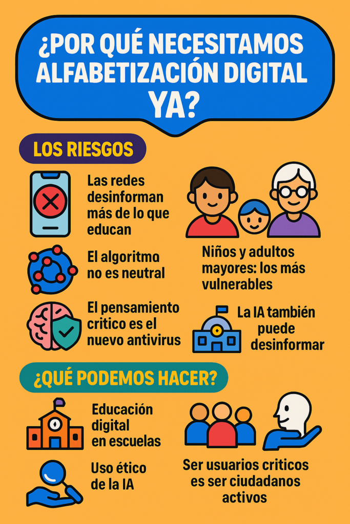 Lo dije en vivo y lo repito aquí: necesitamos alfabetización digital urgente, tanto en casa como en la escuela. Y no hablo solo de saber usar un celular o descargar una aplicación. Me refiero a formar criterio, a desarrollar el músculo del pensamiento crítico. A aprender a decir: «¿Cómo sé si es verdad? “esto no me cuadra…mejor lo verifico».