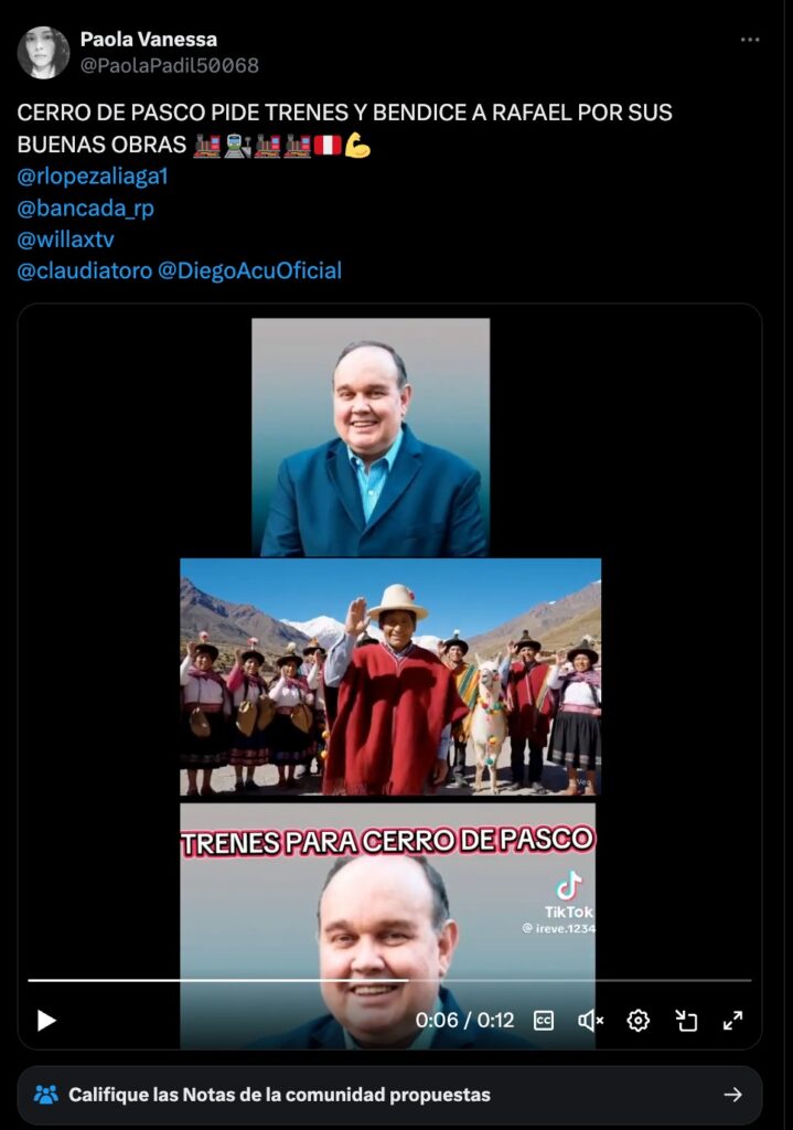 Pudo haber pasado desapercibido en TikTok -surgió de una cuenta dedicada a hacer videos con IA, acumulaba apenas 68 ‘me gusta’, dos comentarios y dos compartidos al momento de escribir estas líneas-, pero un detalle cambió su alcance: alguien lo descargó y comenzó a difundirlo en la red social X (antes Twitter). Fue allí donde el material ganó notoriedad: casi 700 ‘me gusta’ y más de 210 compartidos. La cuenta promotora, @PaolaPadil50068, muestra características típicas de un troll o de un perfil creado para promover a Rafael López Aliaga y Renovación Popular. El nombre numérico, la actividad monotemática, el tono propagandístico y las menciones estratégicas refuerzan la hipótesis de que podría formar parte de una red de respaldo político.